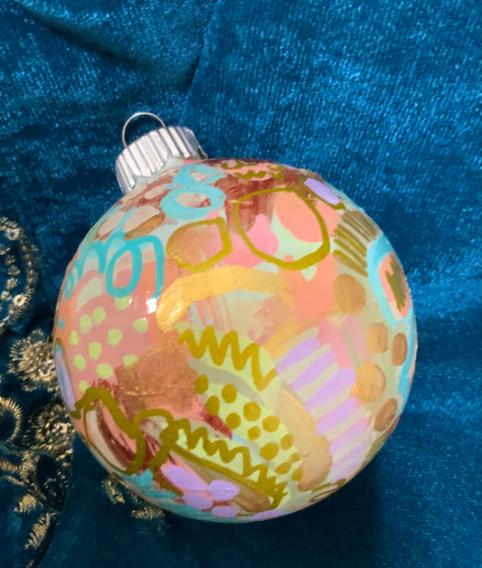 Christmas ornament- mint, coral, blue, copper, red, mauve, gold