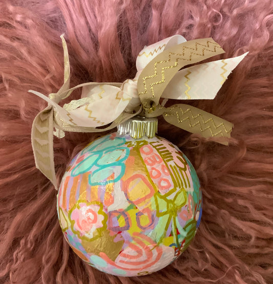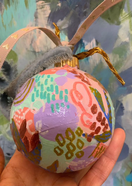 Christmas ornament- mint, coral, blue, copper, red, mauve, gold